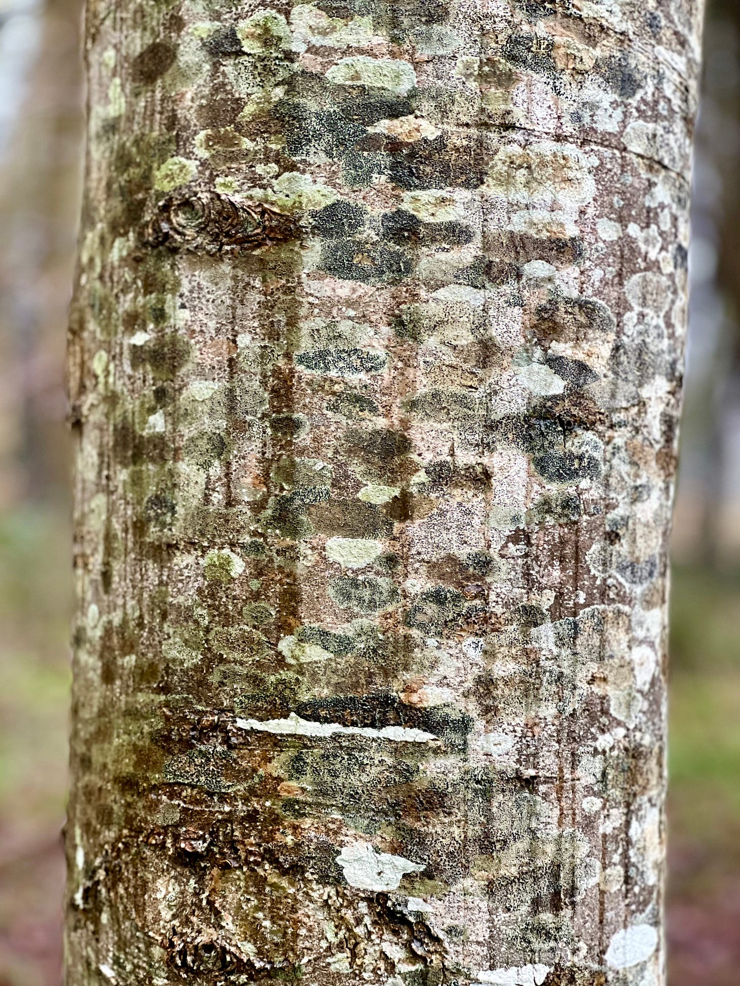 One of my regular walks took me past a stand of young ash trees. These are particularly eye catching in the winter gloom, when there is little undergrowth vying for attention and plenty of rain to enhance their abundant lichen badges. It’s intriguing to think that each lichen is not a single organism but a network of fungal hyphae sheltering photosynthetic algae/cyanobacteria, which in return provide the fungus with food.