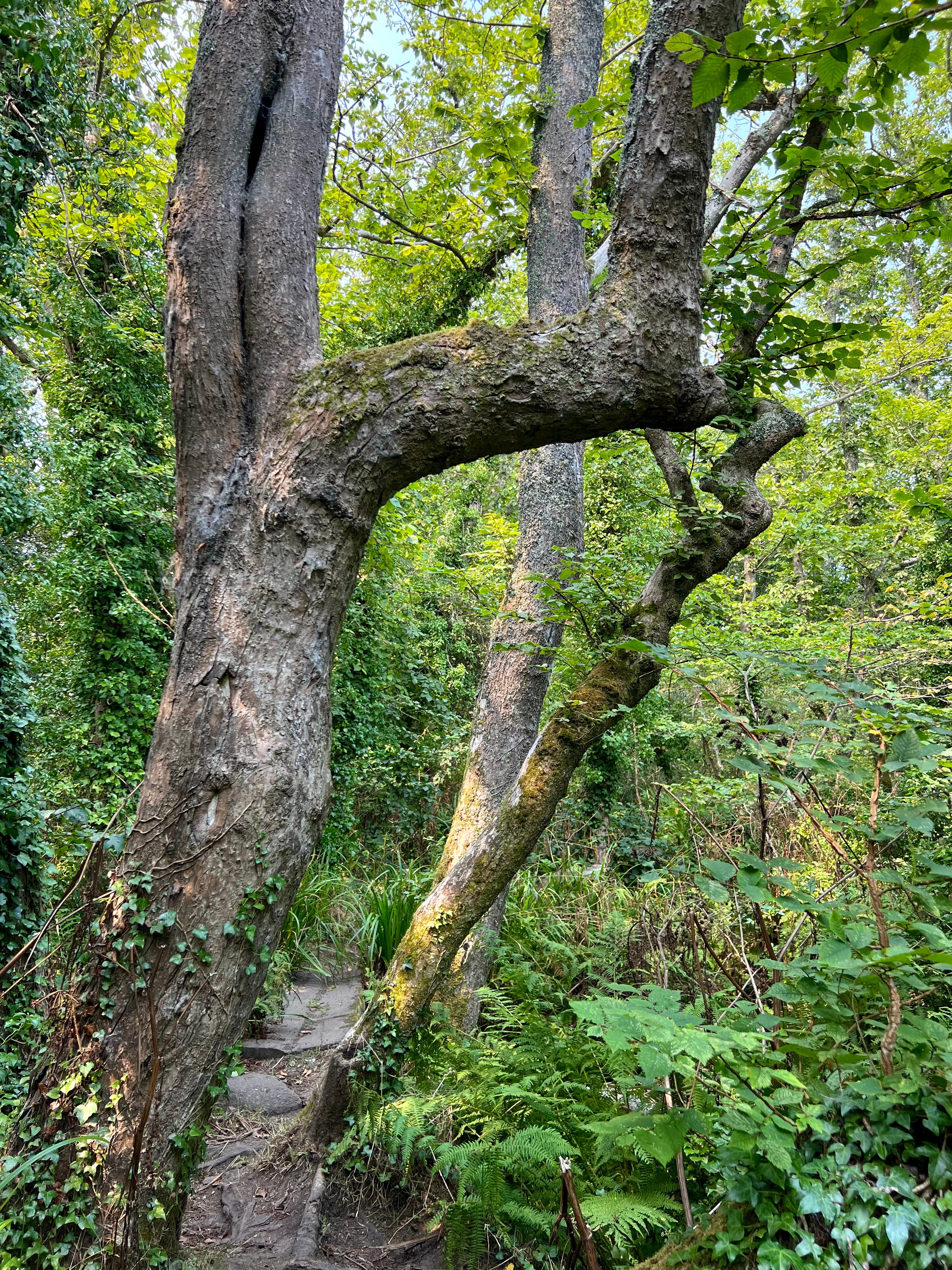 One thing the Isles of Scilly lack, dare I say it, is much woodland, but one way to be immersed briefly in lush greenery is by following the magical, twisty path near Holy Vale, inland on St Mary’s. I believe the trees here are mostly elm. Like many other places in the UK this summer, the ground was much drier than usual, with board walks to cross marshy areas largely redundant.