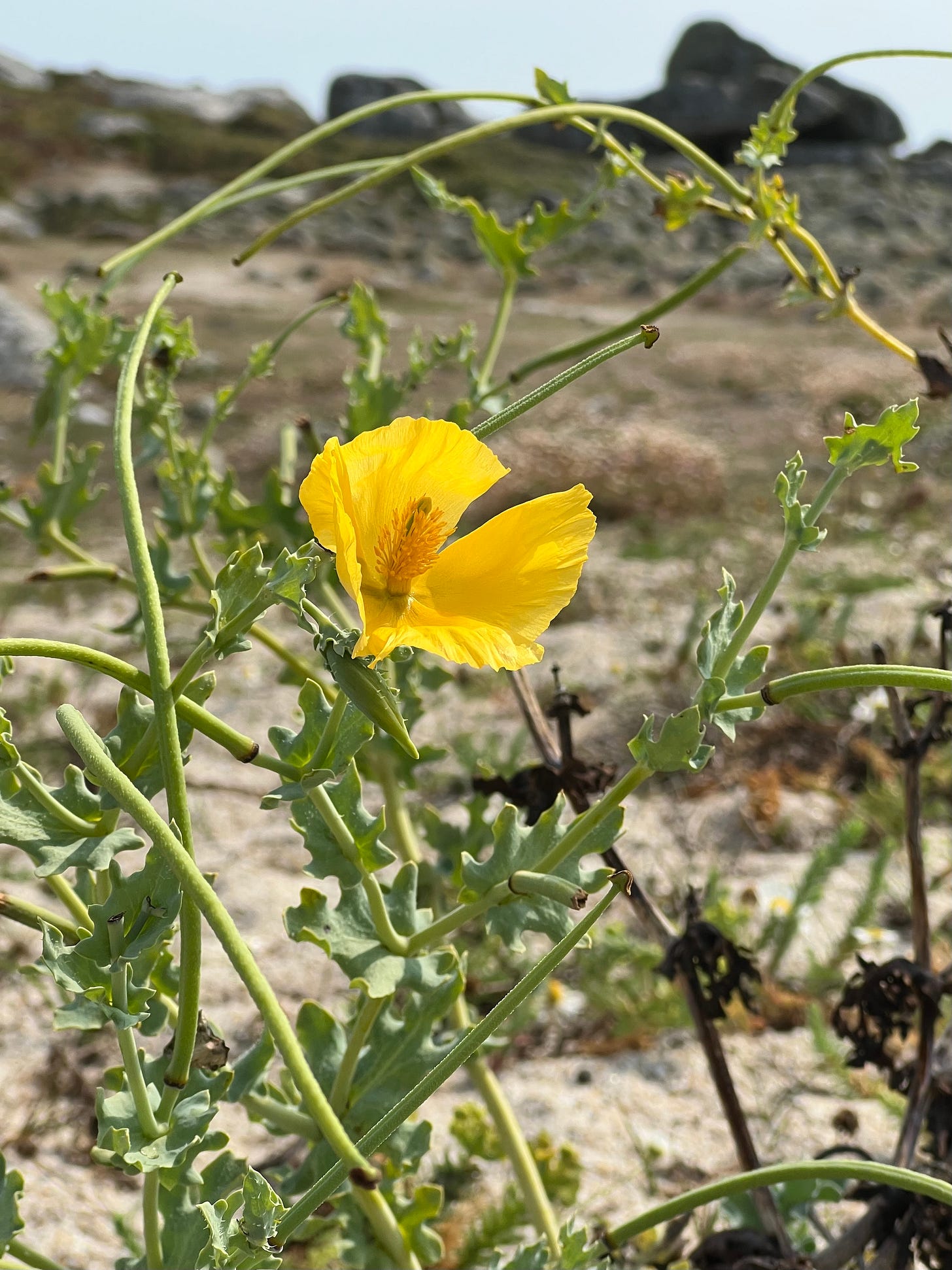 On an open sandy area, just behind Beady Pool on St Agnes, the yellow horned poppies were eyecatching but not the easiest to photograph with their messy, sprawling looks exacerbated by a stiff sea breeze. It’s the characteristic long, curved seedpods that give the plant its name. If you’re lucky, you might find the odd ceramic bead in this small bay, washed up from a shipwrecked Venetian ship in the 17th century (and yes, on occasion, the keen-eyed, treasure-hunting members of my family have been lucky).
