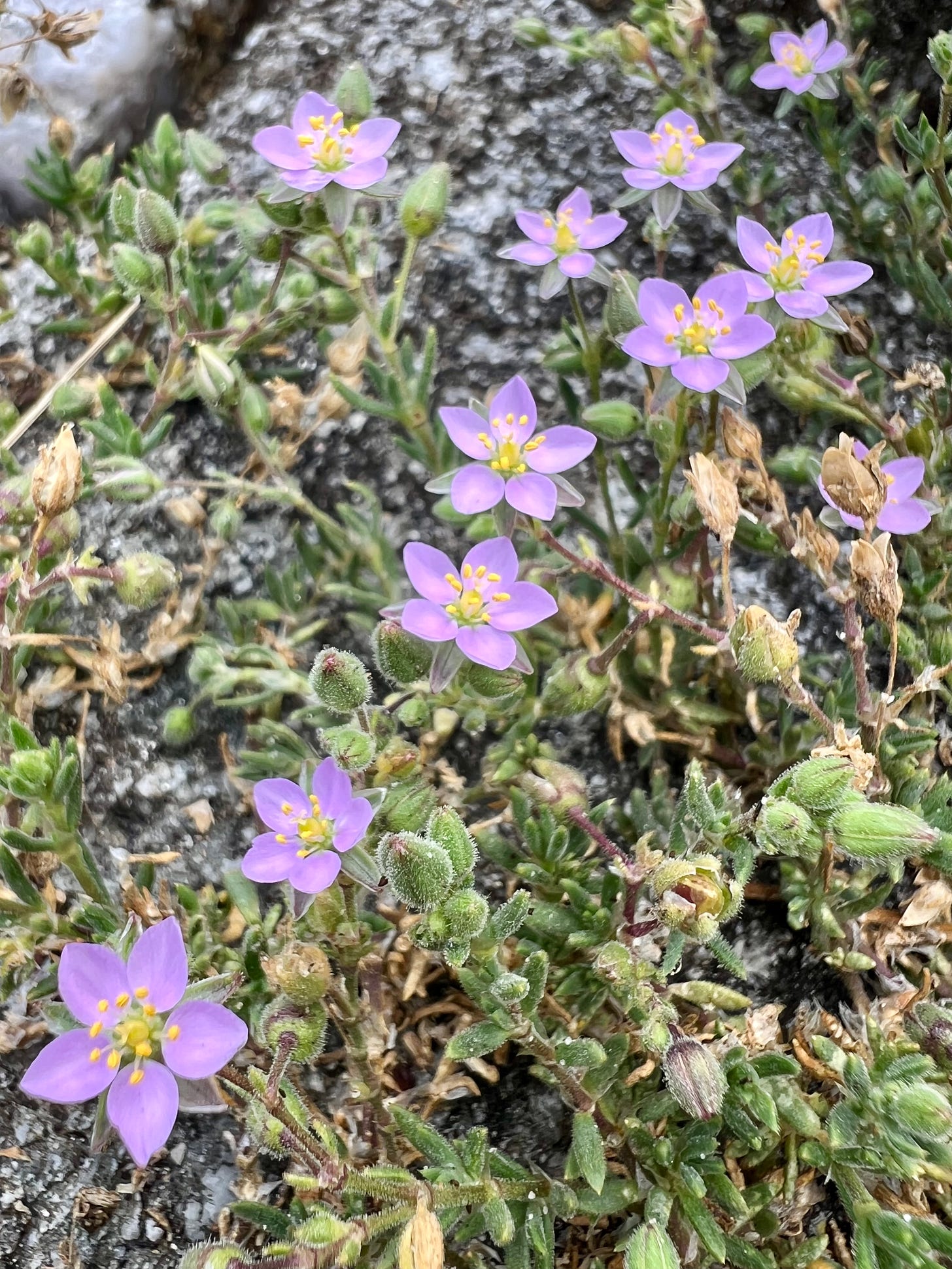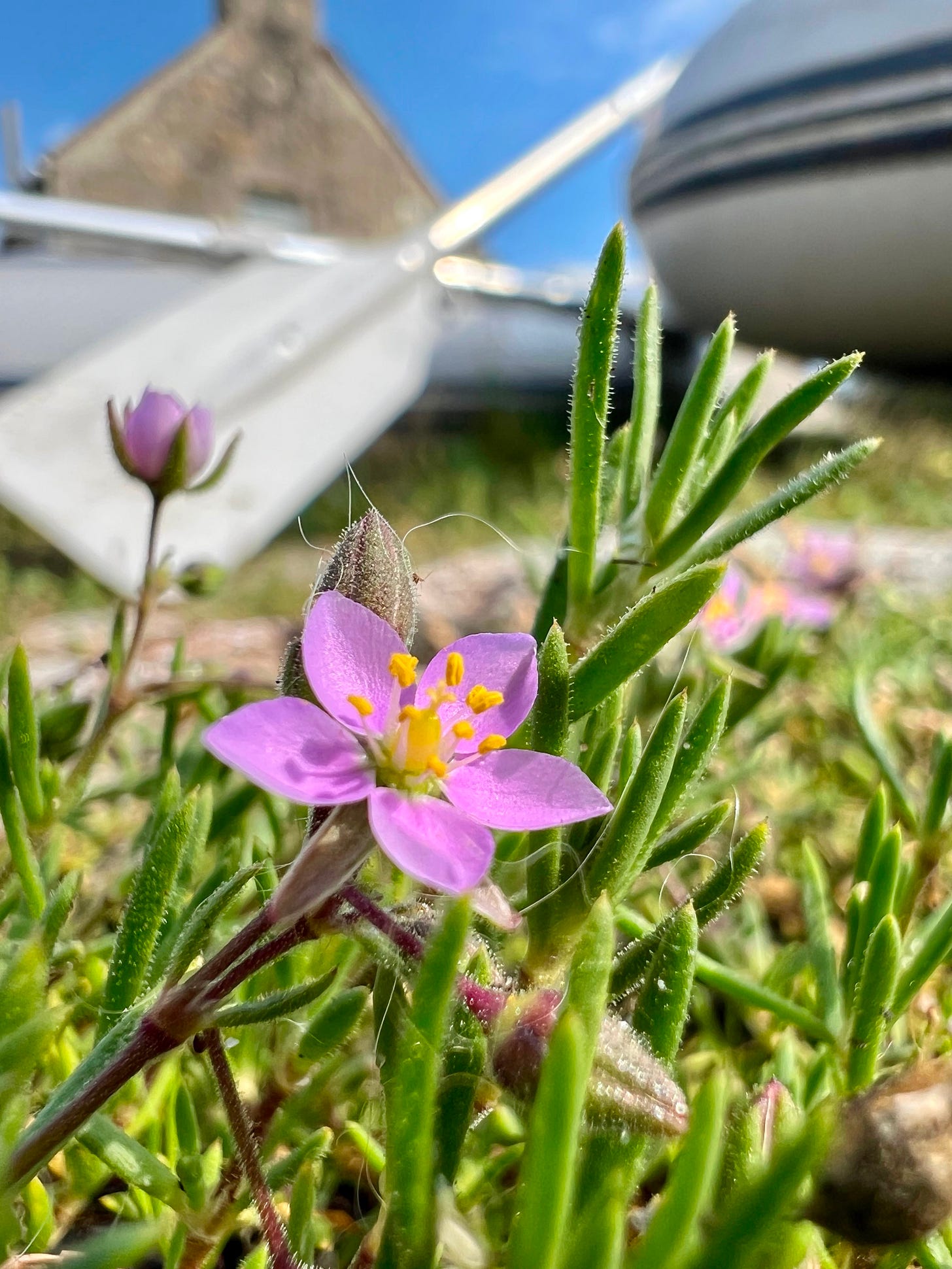 Rooted in the cracks of an old granite slipway on Tresco was a scattering of rock sea-spurrey (a new species for me). Its pretty pink, five-petalled flowers are captivating but only about a centimetre across and borne on low-growing vegetation, so easily overlooked by passers-by. If I hadn’t spent a while taking photographs, I wouldn’t have noticed the plant’s sticky glandular hairs.